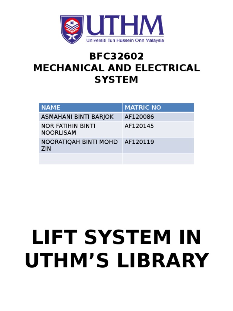 Lift System In Uthm Library Pdf Elevator Building Engineering